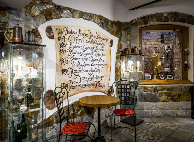 Экспозиция демонстрирует, каким образом использовались источники с начала их появления, а также на протяжении всей истории санатория. Согласно легендам и рассказам, передаваемых поколениями, которые проживали на этих территориях с XII века, эти источники очень ценились. В 1572 году Леонард Турнейсен, врач из Берлина первый упомянул о лечебных свойствах этих вод. Кроме того, можно увидеть настенные росписи с оздоровительной тематикой, экспонаты, касающиеся добычи, и фигуры, изготовленные из песчаника и представляющие покровительницу горняков - св. Барбару.